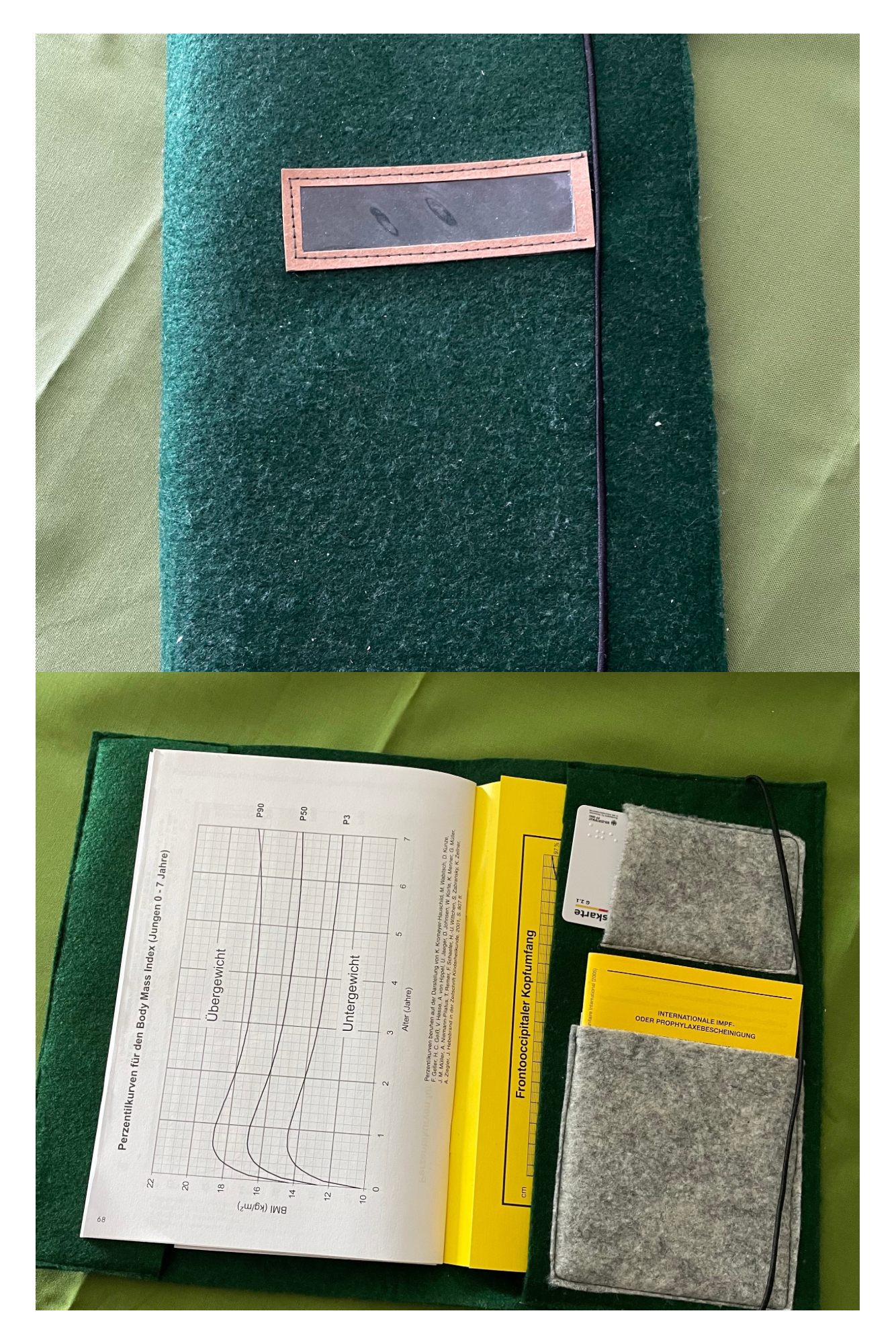 Dein Kind bekommt zur Geburt ein U-Heft, in dem die ärztlichen Vorsorgeuntersuchungen für die nächsten Jahre dokumentiert werden. In die praktische Filzhülle kannst du sowohl das U-Heft, als auch die Gesundheitskarte, den Impfpass und weitere Dokumente deines Kindes einsortieren.